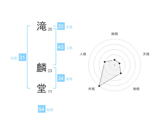 滝 麟堂さんの天格は20画の1点!