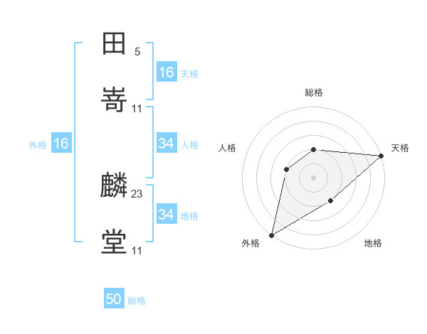 田嵜 麟堂さんを姓名の画数から五運を鑑定