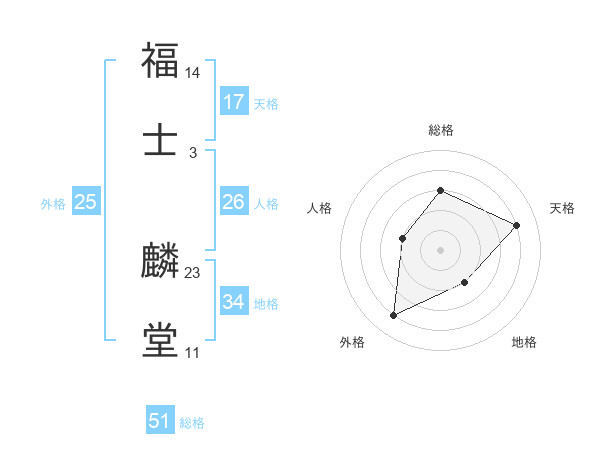 福士 麟堂さんを姓名の画数から五運を鑑定