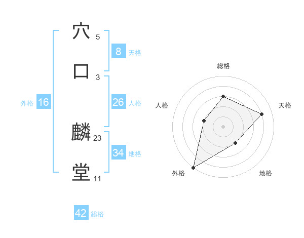 穴口 麟堂さんの総格は42画の3点!