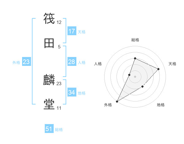 筏田 麟堂さんの総格は51画の3点!