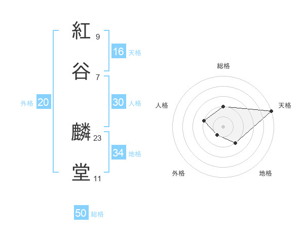 紅谷 麟堂さんの総格は50画の2点!