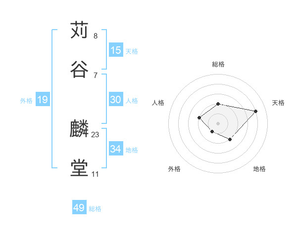 苅谷 麟堂さんの総格は49画の2点!