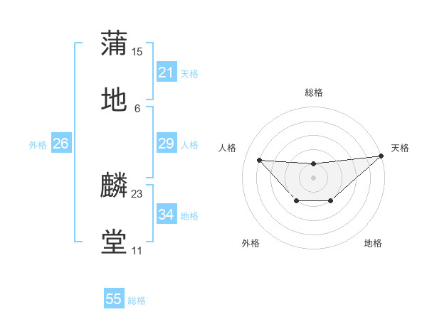蒲地 麟堂さんの天格は21画の5点!