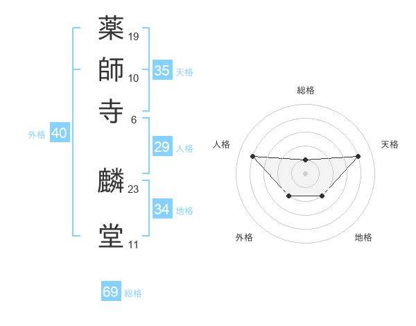 薬師寺 麟堂さんの総格は69画の1点!