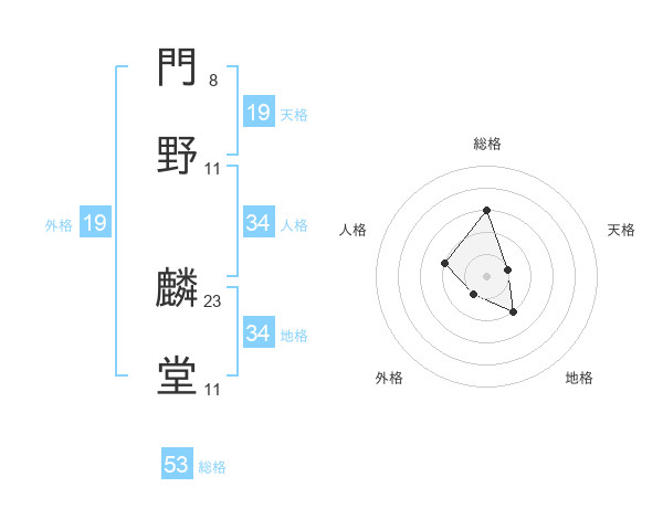門野 麟堂さんの総格は53画の3点!
