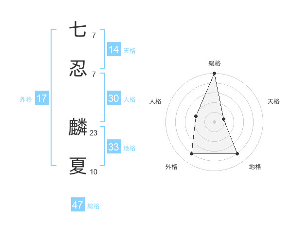 七忍 麟夏さんを姓名の画数から五運を鑑定