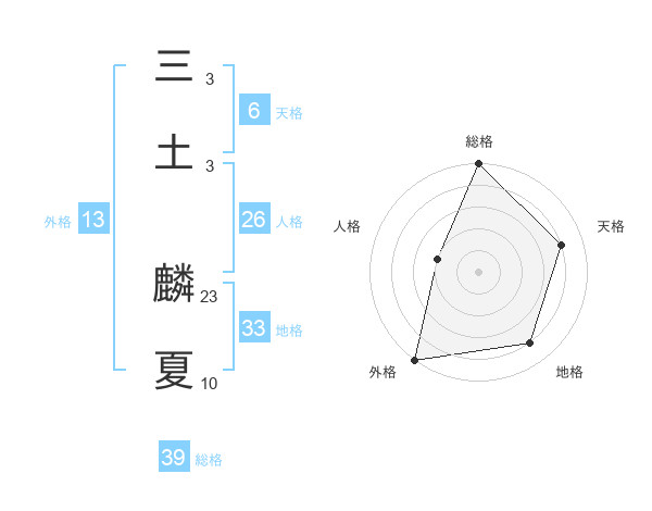 三土 麟夏さんを姓名の画数から五運を鑑定