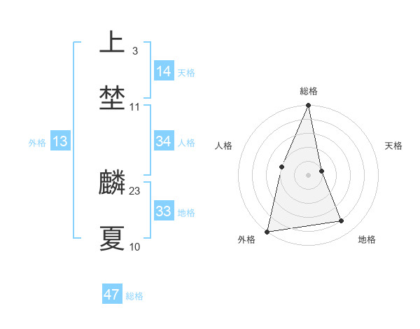 上埜 麟夏さんを姓名の画数から五運を鑑定