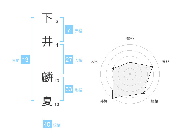 下井 麟夏さんの外格は13画の5点!