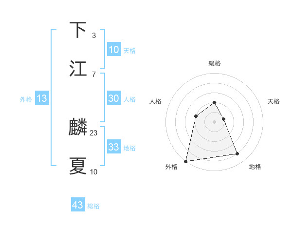 下江 麟夏さんの総格は43画の2点!