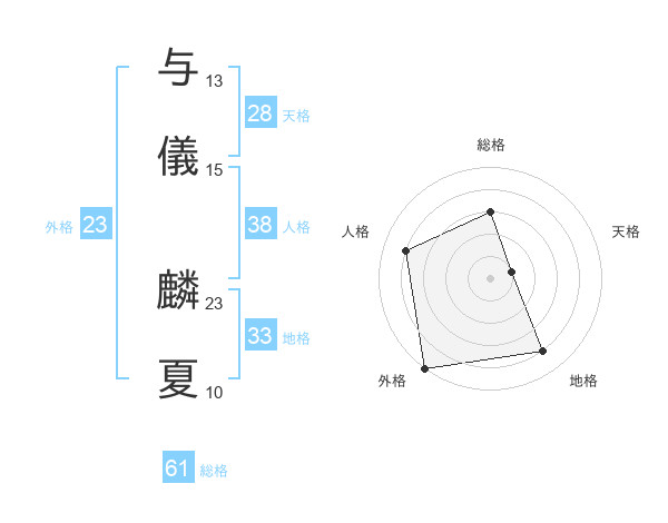 与儀 麟夏さんを姓名の画数から五運を鑑定