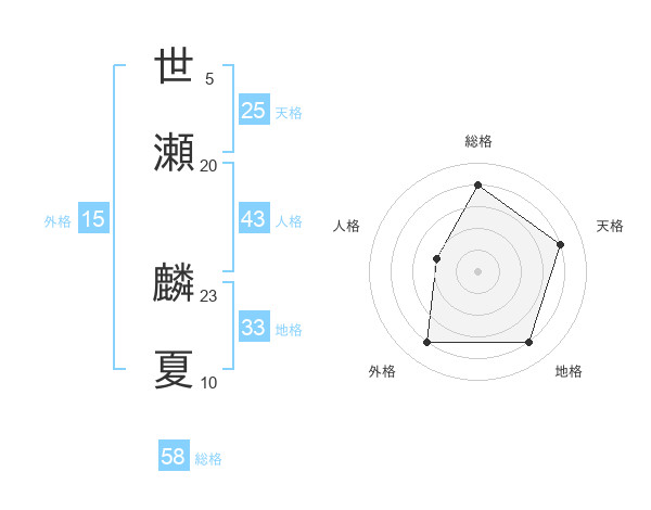 世瀬 麟夏さんを姓名の画数から五運を鑑定