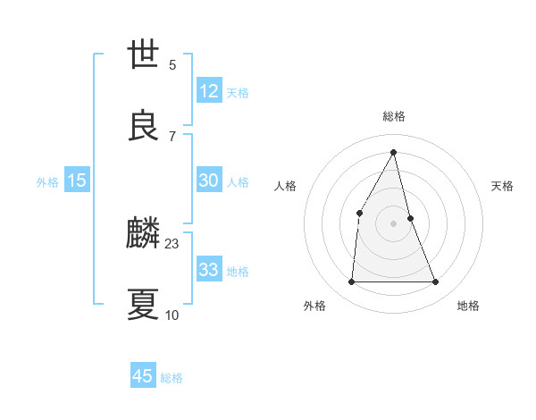 世良 麟夏さんの総格は45画の4点!