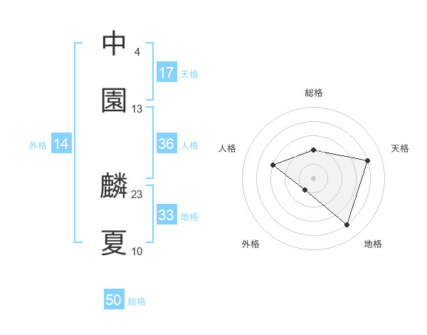 中園 麟夏さんを姓名の画数から五運を鑑定