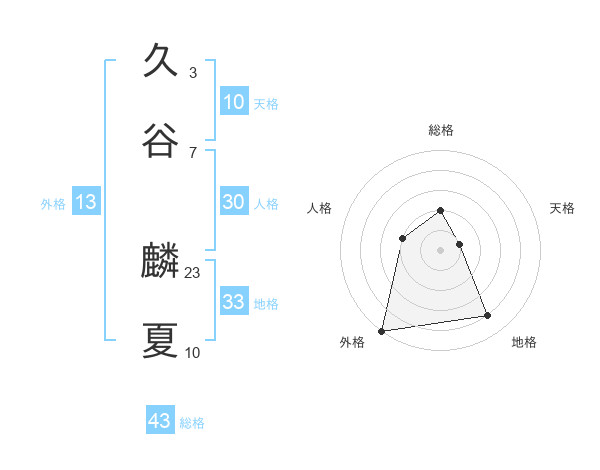 久谷 麟夏さんの外格は13画の5点!