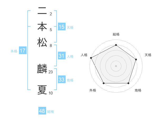 二本松 麟夏さんの天格は15画の4点!