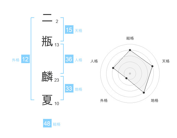 二瓶 麟夏さんの地格は33画の4点!