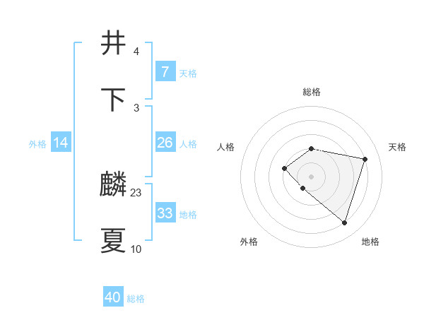 井下 麟夏さんを姓名の画数から五運を鑑定