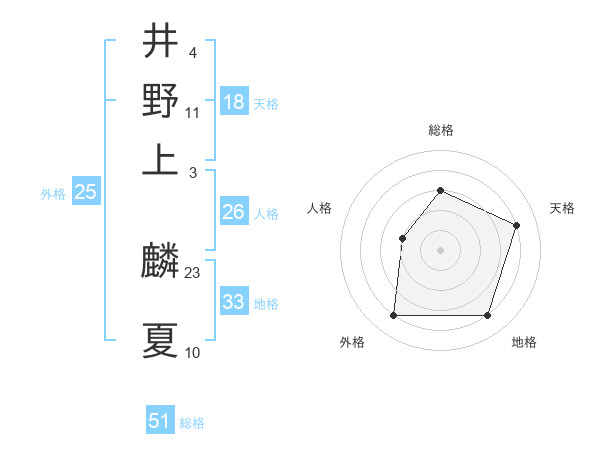 井野上 麟夏さんの総格は51画の3点