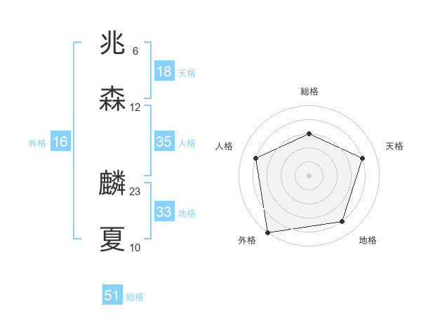 兆森 麟夏さんの総格は51画の3点!