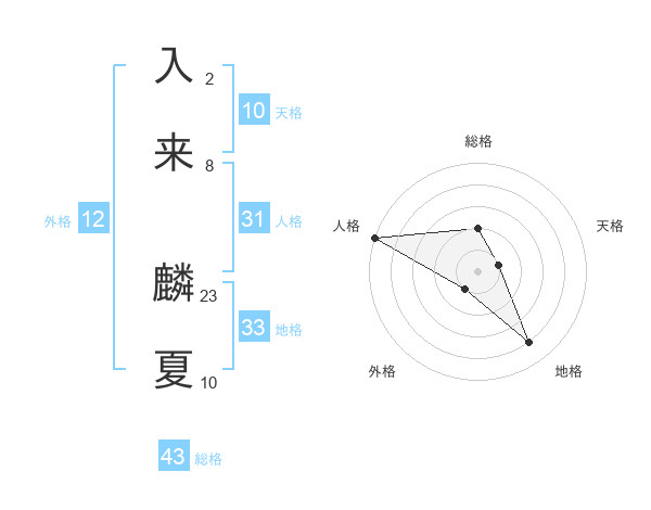 入来 麟夏さんの外格は12画の1点!