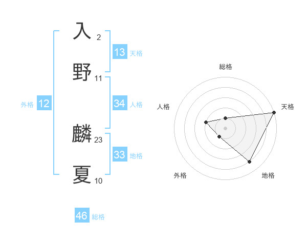 入野 麟夏さんの地格は33画の4点!