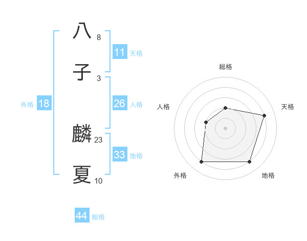 八子 麟夏さんの天格は11画の4点!