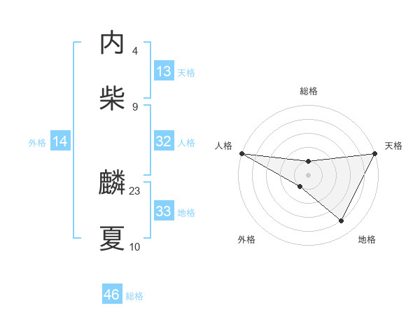 内柴 麟夏さんの天格は13画の5点!