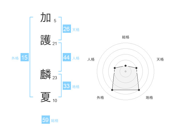 加護 麟夏さんの総格は59画の1点!