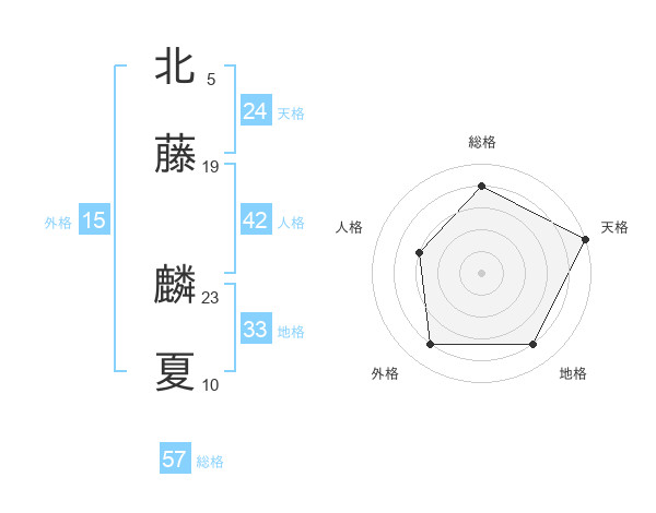 北藤 麟夏さんの天格は24画の5点!