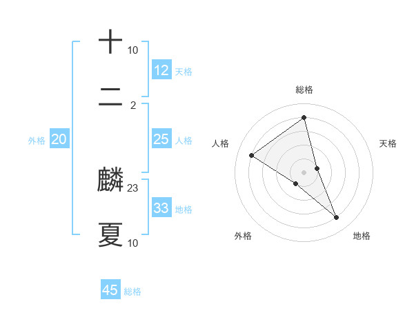 十二 麟夏さんを姓名の画数から五運を鑑定