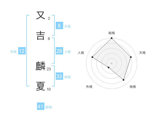 又吉 麟夏さんの天格は8画の4点!