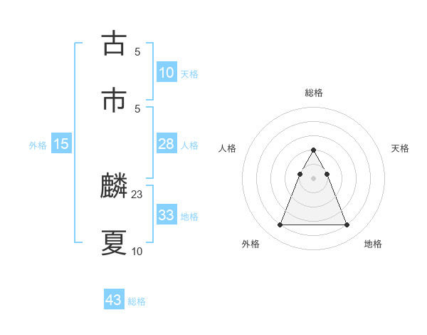 古市 麟夏さんを姓名の画数から五運を鑑定