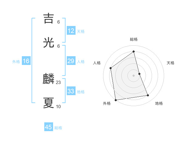 吉光 麟夏さんを姓名の画数から五運を鑑定
