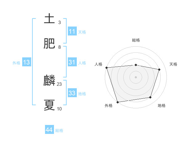 土肥 麟夏さんの総格は44画の2点!