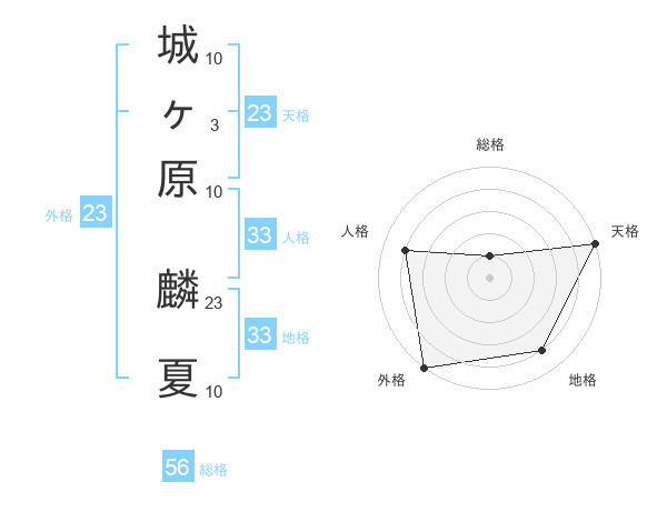 城ヶ原 麟夏さんを姓名の画数から五運を鑑定