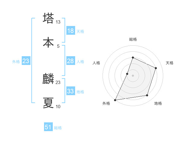 塔本 麟夏さんの総格は51画の3点!