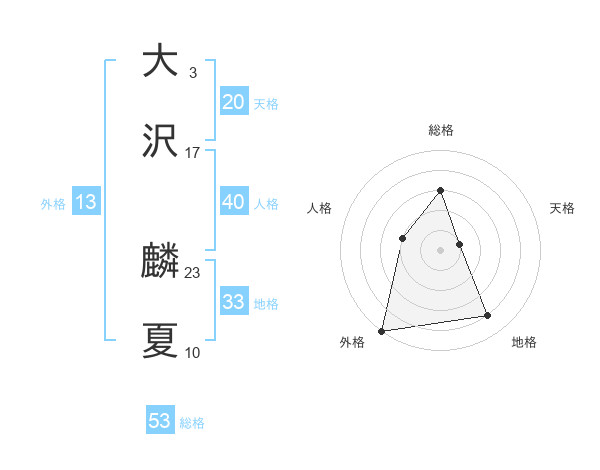 大沢 麟夏さんを姓名の画数から五運を鑑定