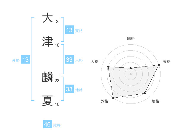 大津 麟夏さんの外格は13画の5点!