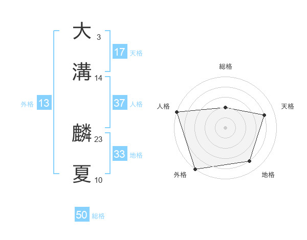 大溝 麟夏さんの総格は50画の2点!