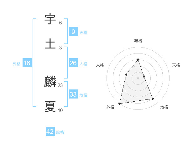宇土 麟夏さんを姓名の画数から五運を鑑定