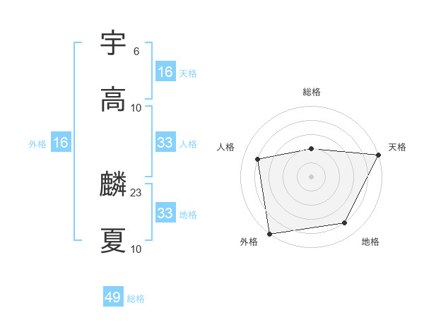 宇高 麟夏さんの総格は49画の2点!