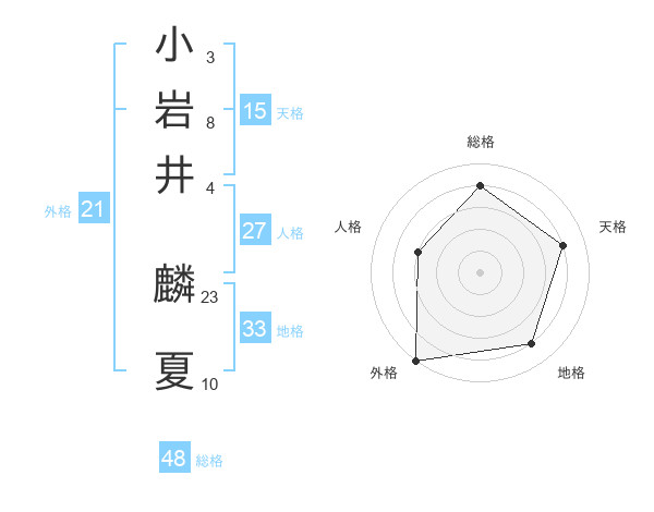 小岩井 麟夏さんを姓名の画数から五運を鑑定