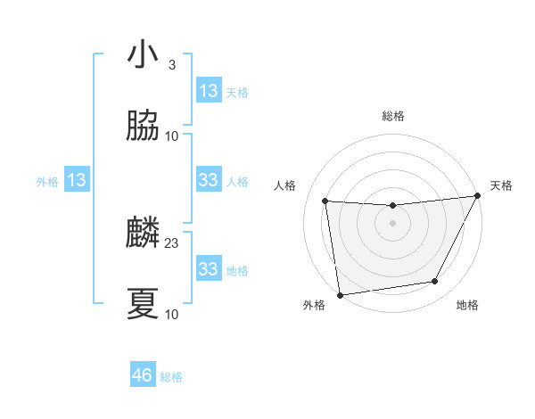 小脇 麟夏さんを姓名の画数から五運を鑑定