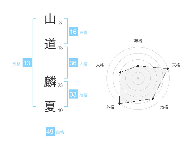 山道 麟夏さんの外格は13画の5点!
