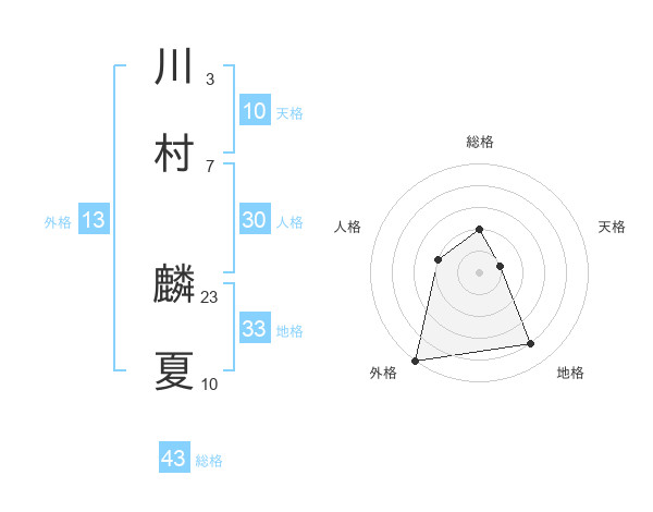 川村 麟夏さんを姓名の画数から五運を鑑定