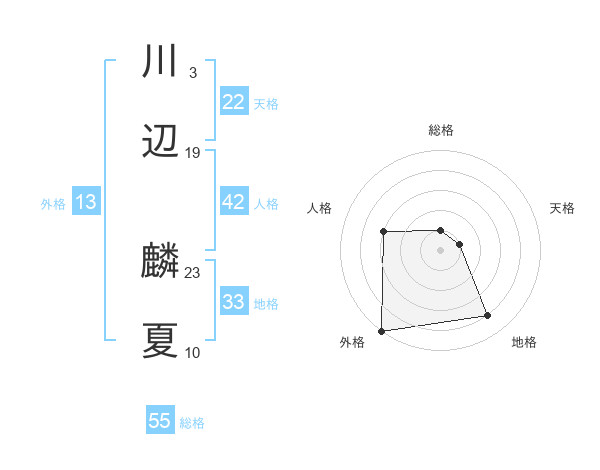 川辺 麟夏さんの外格は13画の5点!