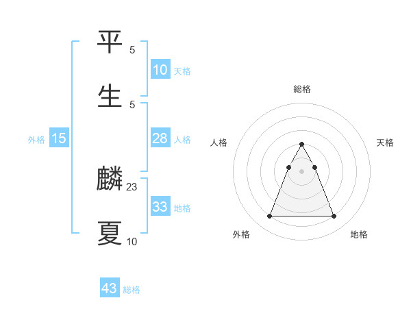 平生 麟夏さんの総格は43画の2点!