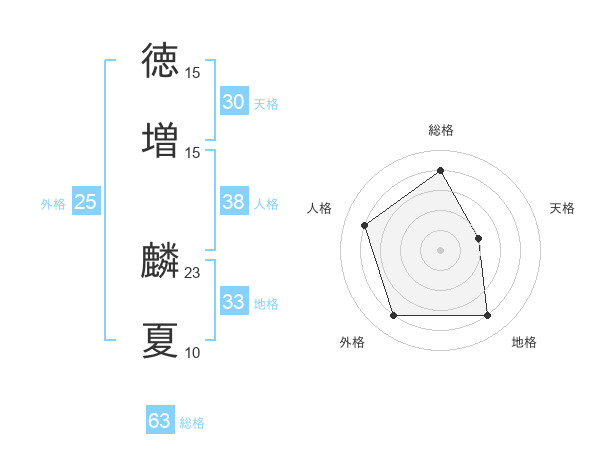 徳増 麟夏さんを姓名の画数から五運を鑑定